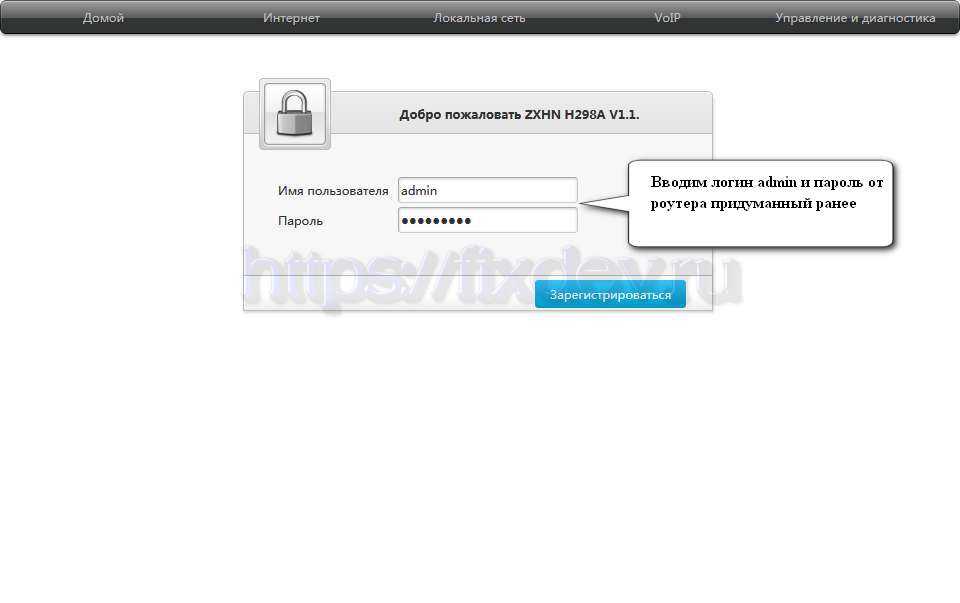 Вводим логин «admin» и «пароль» на доступ к настройкам роутера, который Вы придумали ранее на первом шаге.