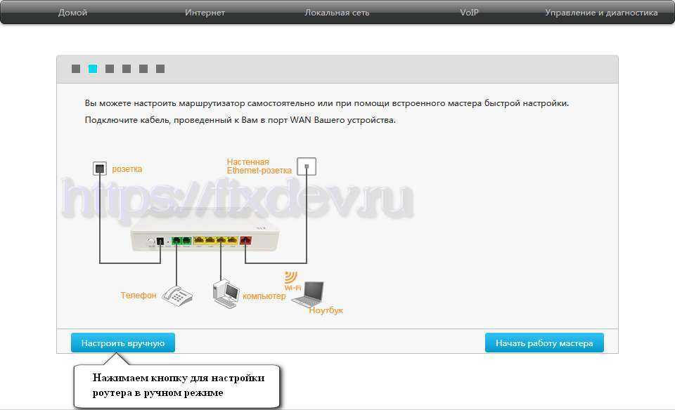 На следующей странице нужно нажать одну из кнопок «Настроить вручную» или «Начать работу мастера». Нажимаем кнопку «Настроить вручную».