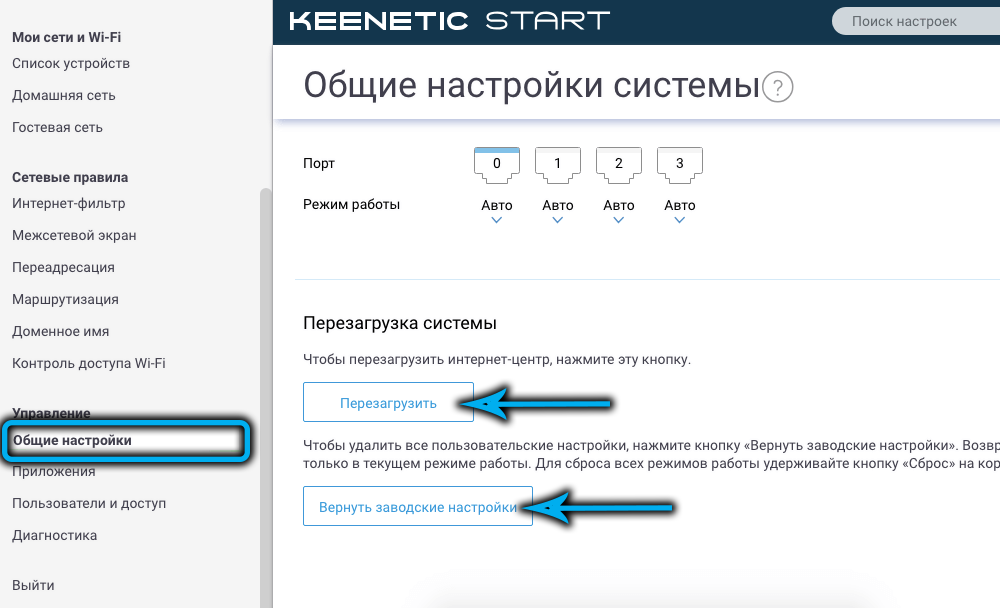 Как перезагрузить Keenetic Start или сбросить до заводских настроек
