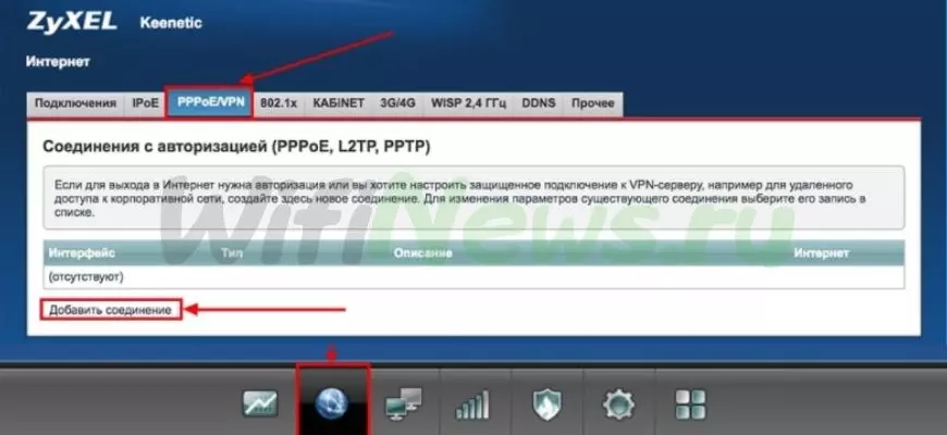 - Далее выбираем вкладку «PPPoE/VPN» нажимаем «Добавить соединение».