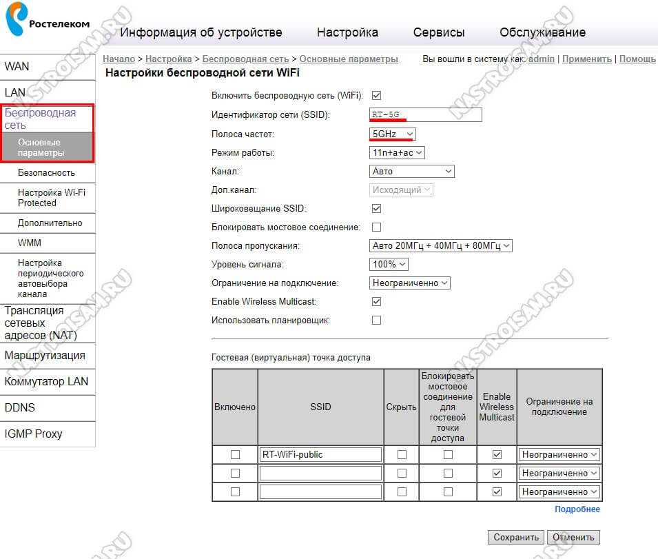 Тут точно так же меняем идентификатор сети SSID и нажимаем на кнопку «Сохранить».