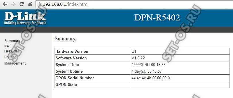 Если говорить о прошивке, то в устройстве DPN R5402 нет такого меню в веб-интерфейсе. Именно поэтому, если терминал перестал работать, вам нужно обращаться в службу поддержки вашего провайдера — сами вы ничего не сделаете. Для того чтобы узнать, есть ли у вас соединение с интернетом, необходимо из любого браузера перейти по адресу 192.168.0.1. После этого откроется окно, где необходимо ввести логин и пароль. Как правило, admin в обоих полях. После того как вход выполнен, переходим в раздел Routing — WAN IP Interaface. В строке PPP Status должно быть Connected. Если это так, то сессия PPPoE установлена и никаких проблем с подключением быть не должно.