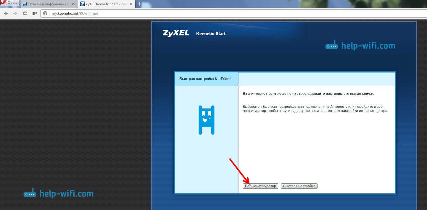 Если вы еще ничего не настраивали, то появится окно с двумя кнопками: Веб-конфигуратор и Быстрая настройка.