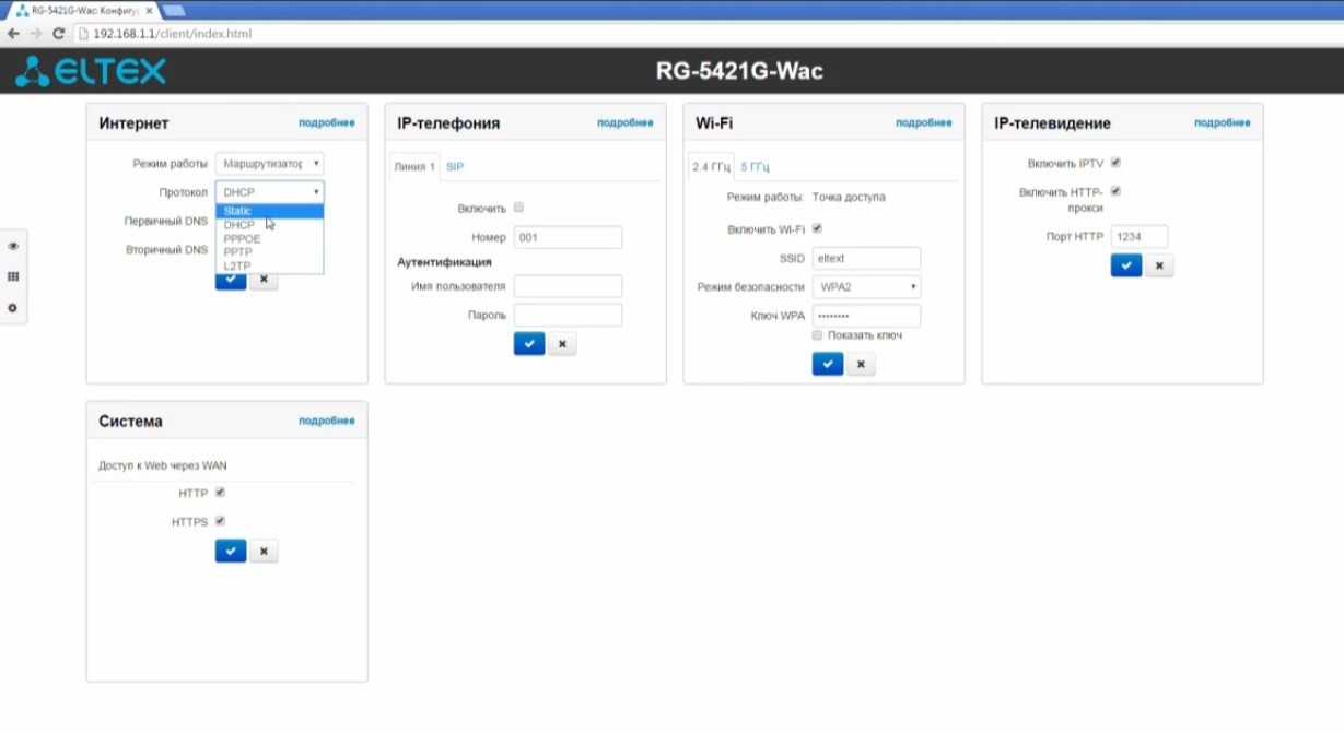 - Для настройки IP-телефонии и телевидения, необходимо выполнить те же действия – просто вводим данные для подключения из договора;