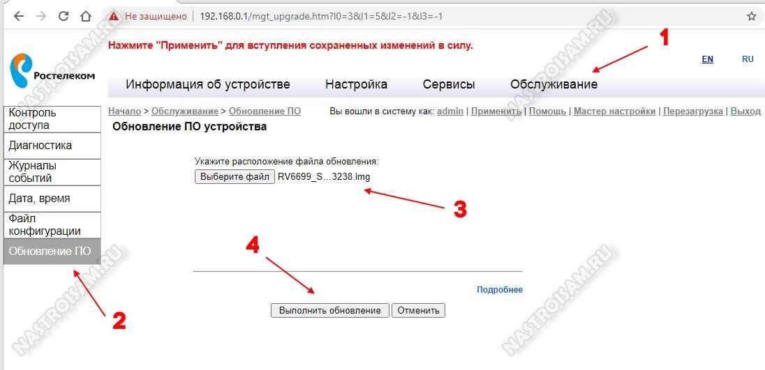 Инструкция (для филиалов, где обновлять прошивку RV6699 надо вручную):