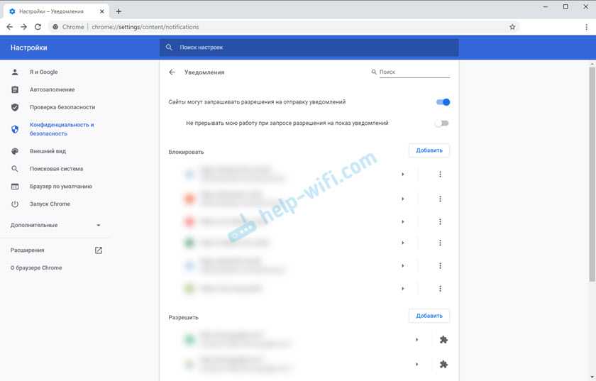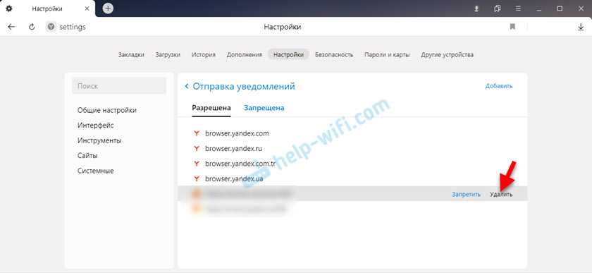 Удаляем сайты, уведомления от которых вы не хотите получать на свой компьютер.