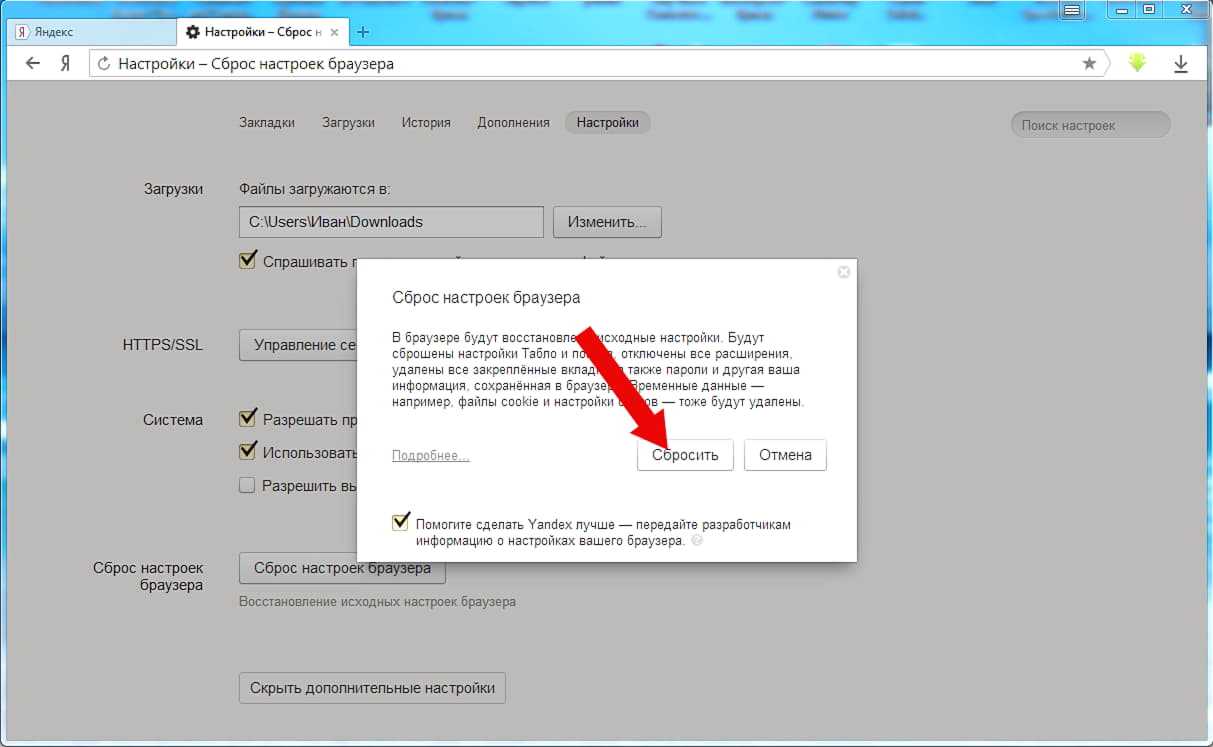 Чтобы удалить вирус из браузера можно произвести полный сброс: