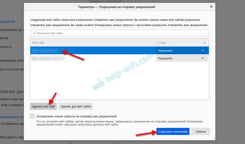 Выделяем нужный сайт из списка и нажимаем на кнопку «Удалить веб-сайт». Так же можно «Удалить все веб-сайты». Когда все сделаете, нажмите на «Сохранить изменения».