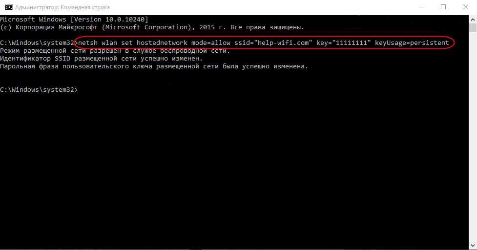 - key=»key_pass» – устанавливает парольную защиту. Чтобы подключиться, нужно будет указать данное значение на соединяющемся устройстве (используйте от 8 символов).