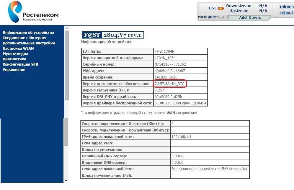 Sagemcom 2804 v7 rev.1 — прошивка 7.257.3Аа4N_RTC Updated 12.02.2017 — есть более новая версия ПО для этого роутера — прошивка 7.282 Подробная инструкция по обновлению тут — как прошить Sagemcom 2804