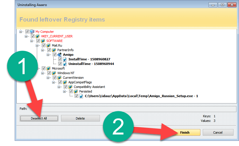 - Revo Uninstaller проверит ваш диск и реестр на предмет «хвостов».