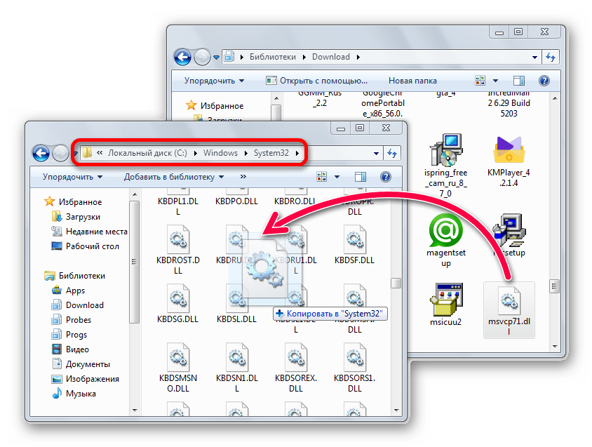 Куда кидать msvcr71.dll на компьютере и как его зарегистрировать в системе: