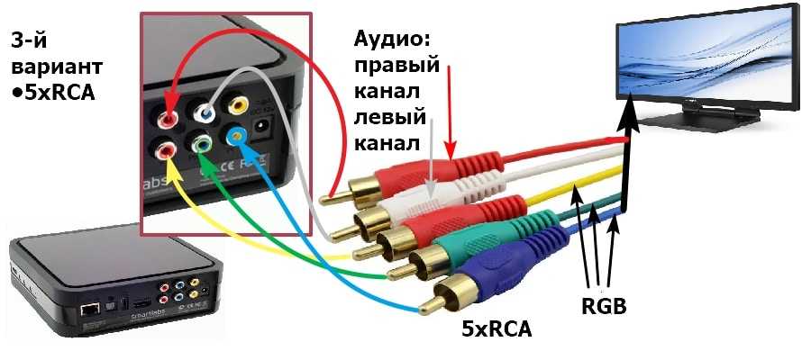 Сначала необходимо подключить приставку к телевизору или монитору. Для этого, в зависимости от модели телевизора, предлагается использовать один из 3-х вариантов:
