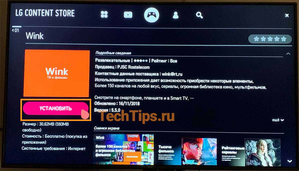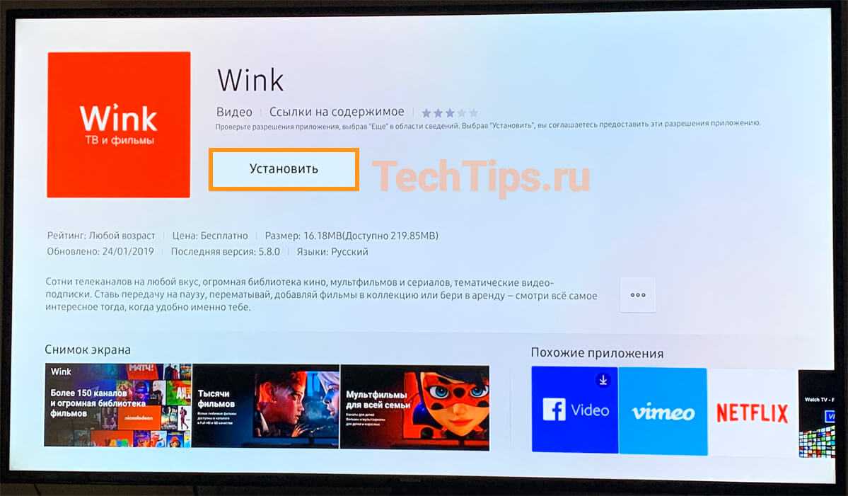 Для других устройств алгоритм один — открываете магазин приложений, в поиске пишите «Wink» и устанавливаете его. Сложность в том, что внешний вид интерфейса зависит от типа устройства и ПО. Сделал описание установки с фотографиями интерфейса для следующих устройств и производителей: