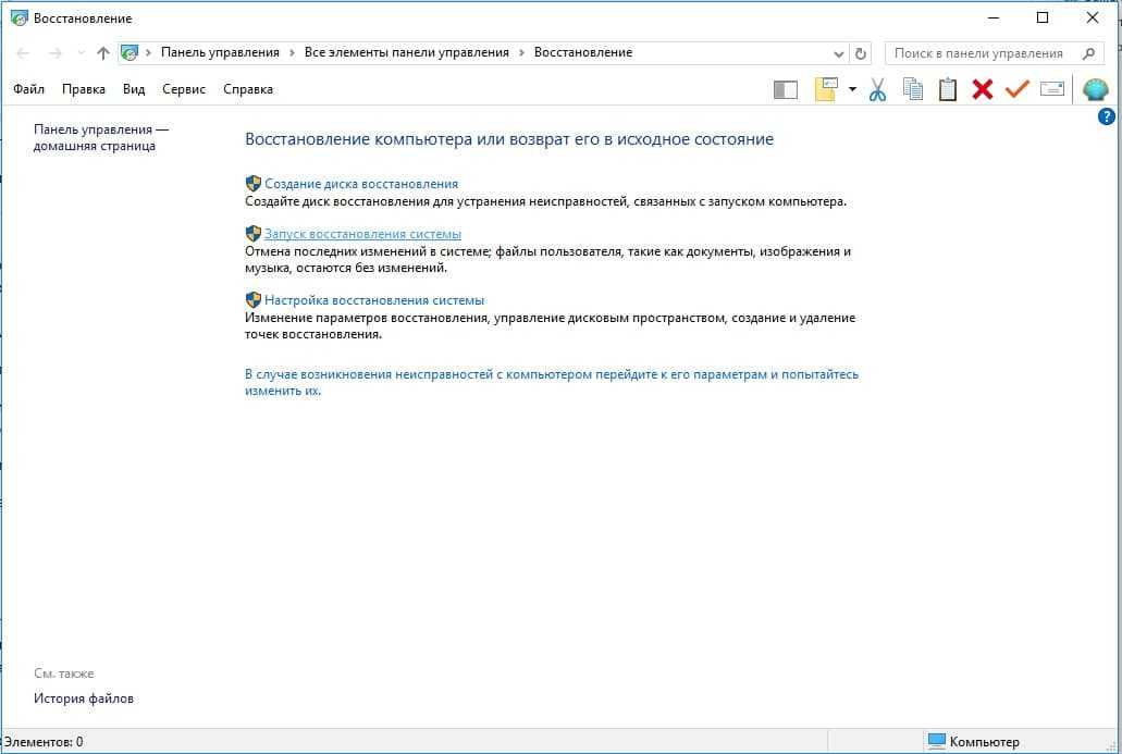 Совет! Если ошибка только появилась и до этого все работало исправно, воспользуйтесь точкой восстановления системы для отката Windows 10 в рабочее состояние.