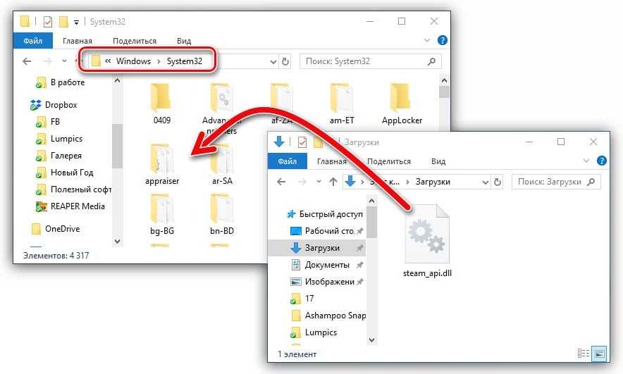 Если Steam_api.dll все равно отсутствует – что делать? В таком случае мы можем попробовать прописать его в корень системы. В таком случае, если файл не будет найден в Steam, то он будет использоваться оттуда: