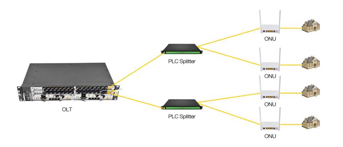 - Коэффициент разделения: потеря маршрута ограничена, PON с пассивными разделителями (разделение на 16, 32 или 64 канала).