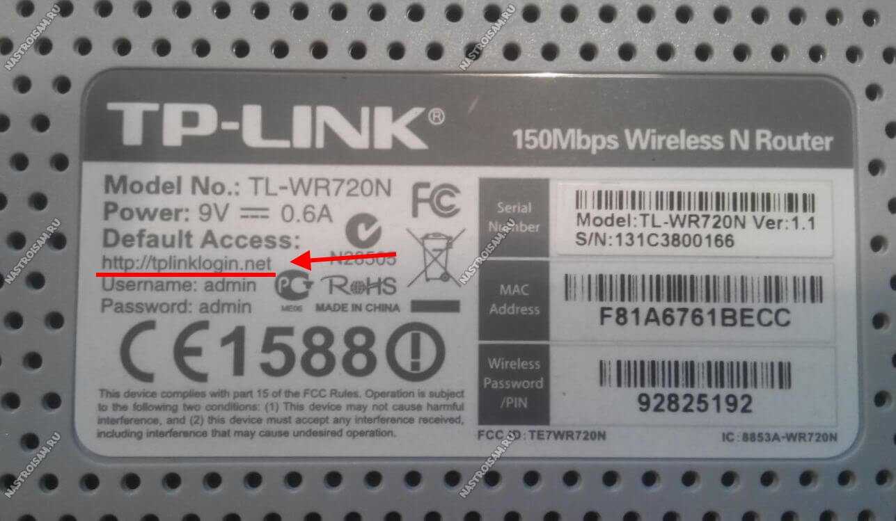 На любом маршрутизаторе TP-Link, как старых моделей, так и на новых моделях Archer, есть специальная наклейка, которая обычно приклеена на нижней части корпуса девайса. В этой наклейке указывается адрес для входа в настройки, логин и пароль для авторизации. Вот так это выглядело на старых моделях:
