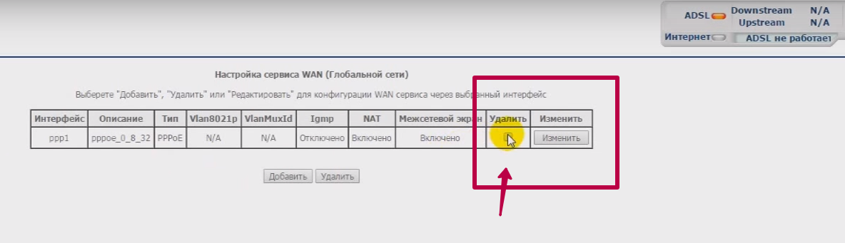 Так как после сброса всех параметров роутер создает несколько исходных не работающих подключений, первым делом нужно их удалить, чтобы не было ошибок при работе. Делается это в несколько шагов.