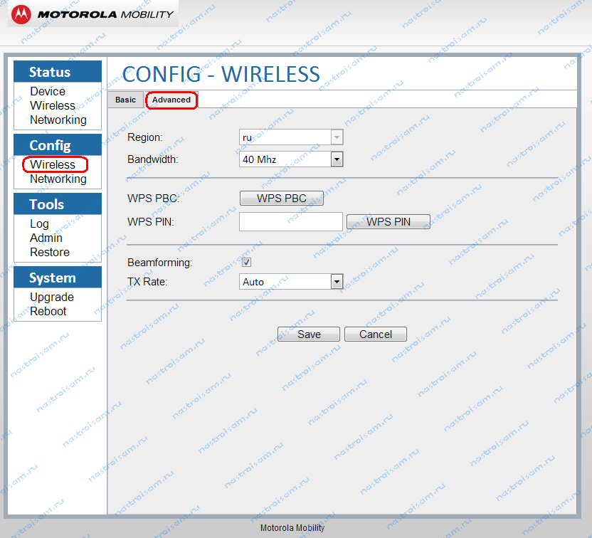 Тоже, только самая основная информация и ничего больше. А что все-таки в настройках? Перейдем в раздел Config -> Wireless, вкладка Basic: