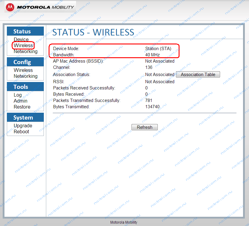 Не считая версии прошивки Motorola VAP2400 и времени работы никакой инфы нет. Идем в раздел в статус беспроводной сети Status -> Wireless: