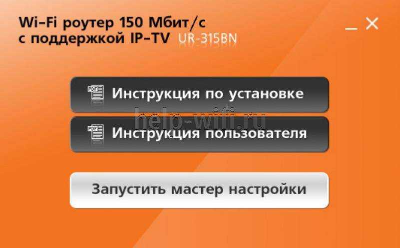 Интересной особенностью можно считать имеющийся в комплекте диск с программой настройки роутера Upvel, которая значительно упрощает первое знакомство с устройством. После вставки CD в привод должна произойти автоматическая загрузка приложения. Здесь нужно выбрать мастер настройки, который проведёт шаг за шагом по всем этапам конфигурации. Далее следует установить язык. Радует тот факт, что имеется поддержка русского. После приветствия нужно нажать «Настроить роутер».