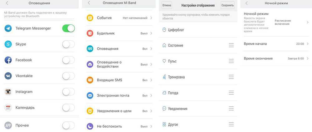 Здесь настраивается отображение и порядок видов активности в меню «Тренировки» на фитнес трекере. Если вы не занимаетесь тем или иным видом спорта, то можно также убрать его в «Скрытые», чтобы не отображался на экране Xiaomi Mi Band