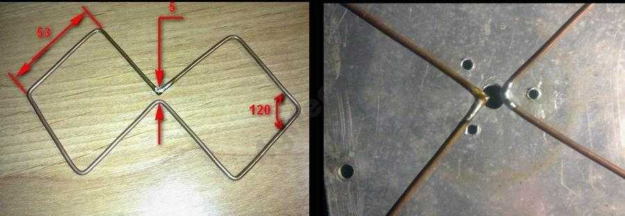 Прочие длины волн повременим рассматривать, порядок расчета очевиден. Приведем пару замечаний по конструкции самодельной антенны для модема. Если биквадрат один (и больше встретим), напоминает восьмерку – не более. В центральной точке пересечение отсутствует. Просто проволока сближается, не касаясь, затем разбегается вновь в стороны. Напоминает, действительно, положенную набок восьмерку (поляризация WiFi вертикальная). Для другой поляризации — горизонтальной — размещаем восьмерку вертикально.