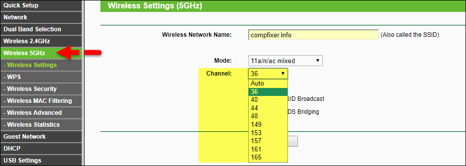 - На главном Wi-Fi роутере меняем канал. Переходим в раздел Wireless и напротив Channel устанавливаем определенный номер — 6. Сохранение.