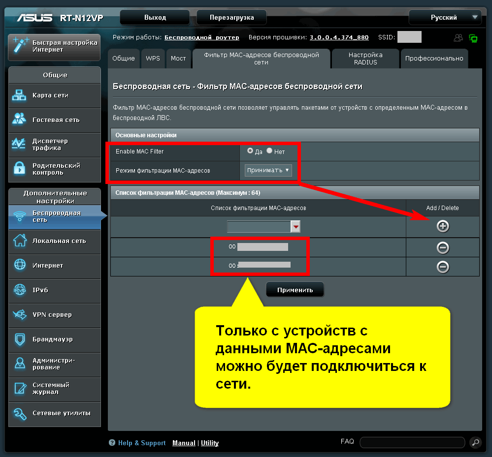 В панели управления данная функция вызывается в разделе «Настройки WiFi»