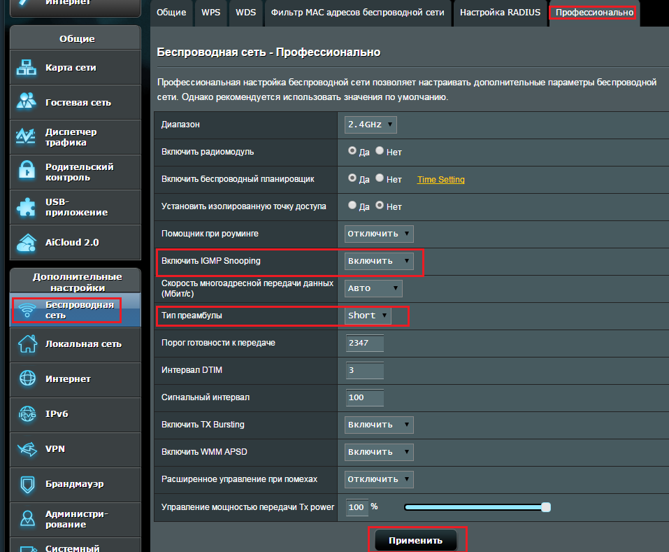 При этом конфигурации основной беспроводной точки можно не менять, кроме одной: