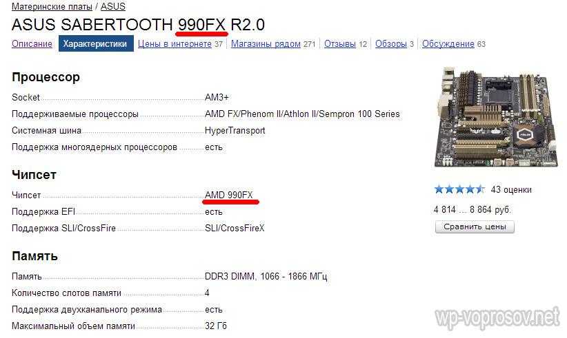 А здесь — плата ASUS SABERTOOTH 990FX R2.0 с производительным чипсетом от AMD 990FX, что также видно как из названия, так и при подробном описании.
