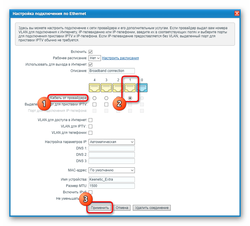Отыщите параметр, отвечающий за смену порта, к которому подключается кабель от провайдера. Измените значение или просто узнайте его, а по завершении не забудьте применить настройки и отправить маршрутизатор на перезагрузку.