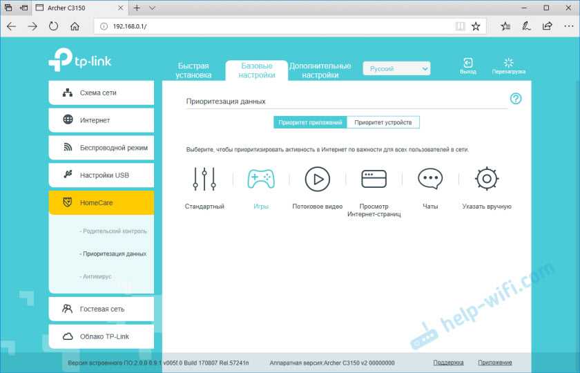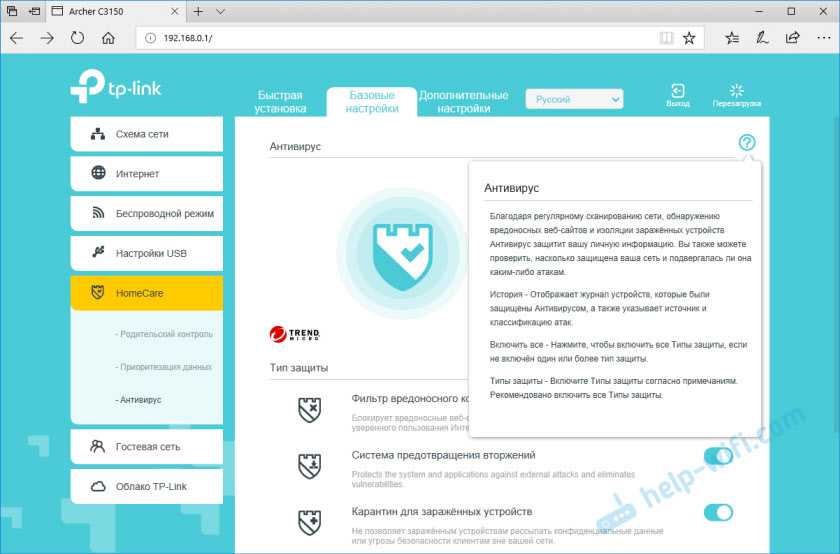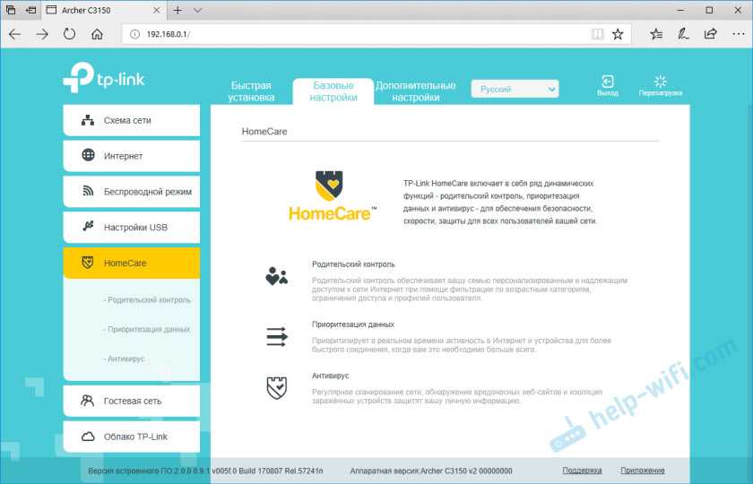 Первое, что бросается в глаза при входе в панель управления TP-Link Archer C3150, это раздел «HomeCare».