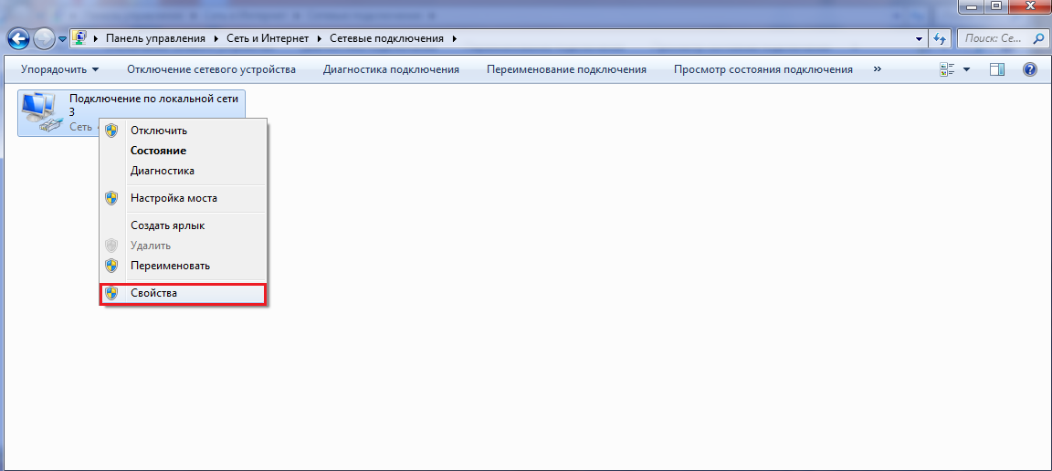 Правой кнопкой мыши нажимаем на активную сеть и выбираем «Свойства»: