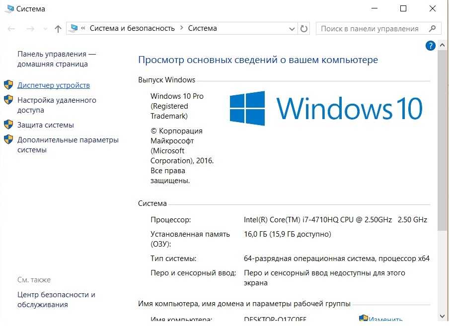 Откроется окно, в котором требуется выбрать раздел «Диспетчер устройств».