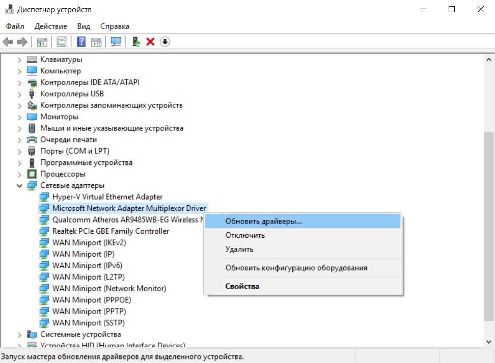 - Обновить драйвер. Если не помогло и адаптер не нуждается в последней версии драйвера, то