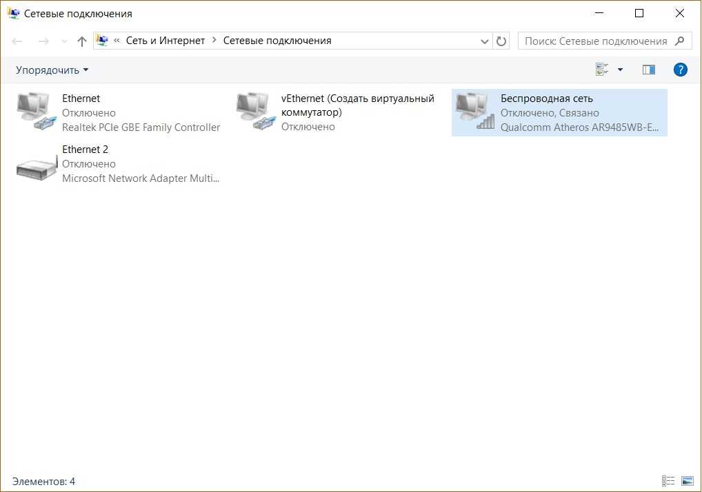 Нажмите сочетание кнопок Win+R и введите ncpa.cpl, чтобы открыть сетевые адаптеры. Если имеется виртуальный сетевой адаптер созданный виртуальной машиной, то отключите его. Также, если отключен адаптер «Беспроводная сеть», то включите его нажав по нему правой кнопкой мыши. Если ноутбук не видит сети Wi-Fi, то переходим к следующему пункту.