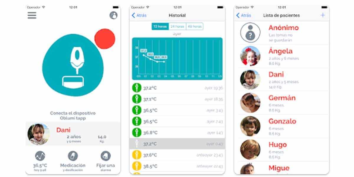 В этом списке есть еще одно приложение с большим количеством времени для измерения температуры, это одно из Олуми Тапп Это позволяет использовать планшет в качестве превосходного и практичного инструмента в качестве цифрового инфракрасного термометра, который не только дает возможность измерять температуру, чтобы оценить, есть ли у вас лихорадка, но также предлагает другие интересные функции, такие как измерить температуру в ухе, и, как указано в их описании, даже в жидкостях, поэтому он представлен как отличный вариант, если вы хотите иметь практичное приложение для всей семьи с возможностью иметь история измерений и с разными профилями каждого из членов семьи.