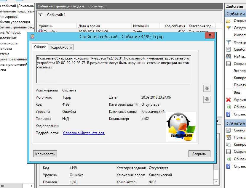 Так же если посмотреть логи операционной системы Windows, то вы там обнаружите вот такое уведомление, код события 4199: