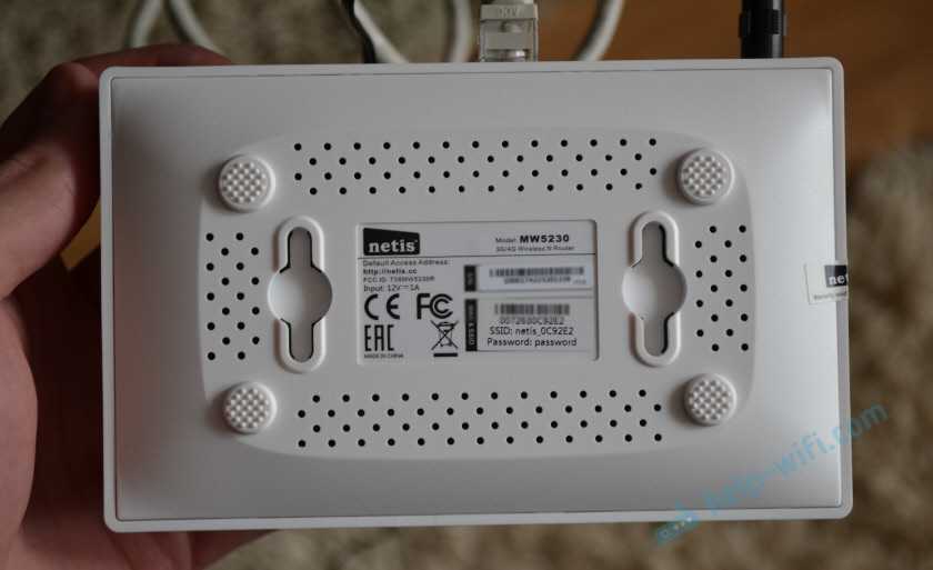 Подключитесь к Netis MW5230 с помощью сетевого кабеля (я подключился по кабелю, вы можете это видеть на фото выше), или по Wi-Fi. По умолчанию Wi-Fi сеть называется «Netis_***». Она защищена. Заводской пароль: password. Имя сети и пароль указаны снизу роутера.