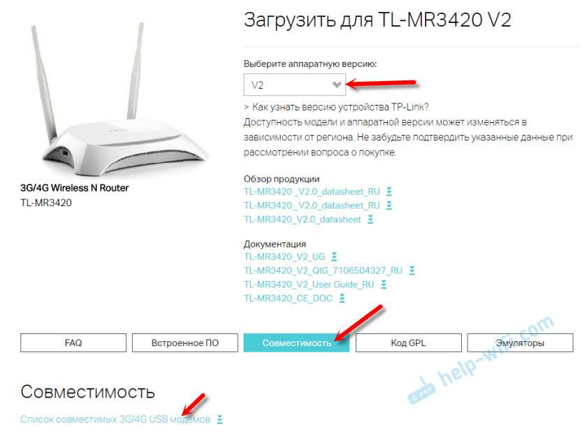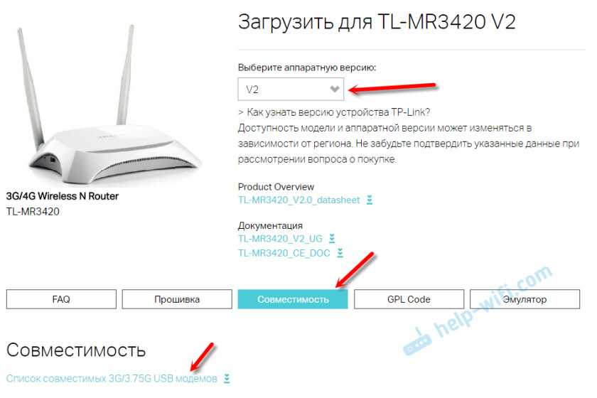Сначала выберите в строке «Список совместимых модемов» из списка модель вашего маршрутизатора, и после клика на нём откроется новая страница с указанием модемов, которые могут работать в паре с вашим сетевым оборудованием.