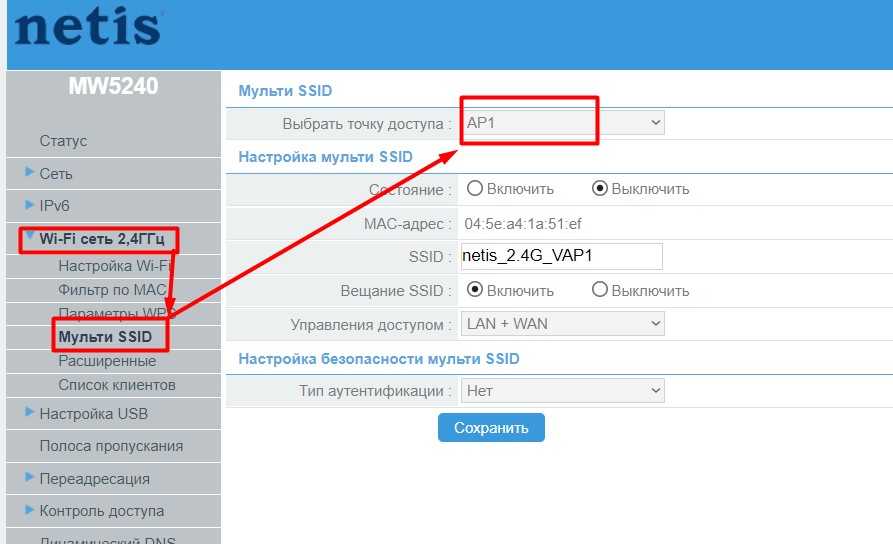 Здесь можно создать аж 4 точки доступа (зачем?!):