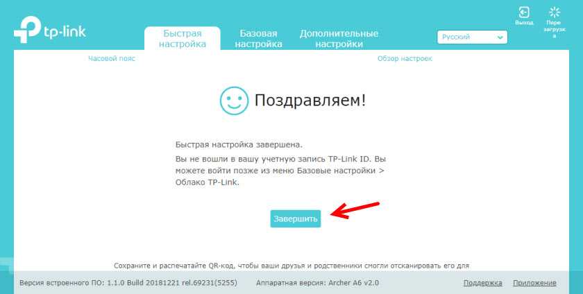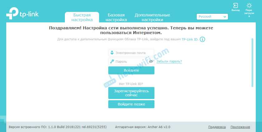 Роутер снова сохранит настройки и предложит вам привязать роутер к TP-Link ID, так как TP-Link Archer A6 поддерживает облачные функции.