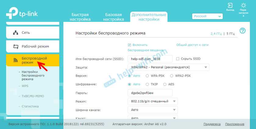 А настройки Wi-Fi можно изменить в разделе «Беспроводной режим».