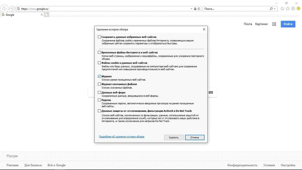 Если же вы пользуетесь более старой версией браузера, то нажмите на кнопку “Сервис” в верхней панели браузера, затем выберите пункт “Удалить журнал браузера.” У вас появится окно, где вам нужно поставить галочку напротив пункта “Журнал.” После этого, нажмите кнопку “Удалить.”