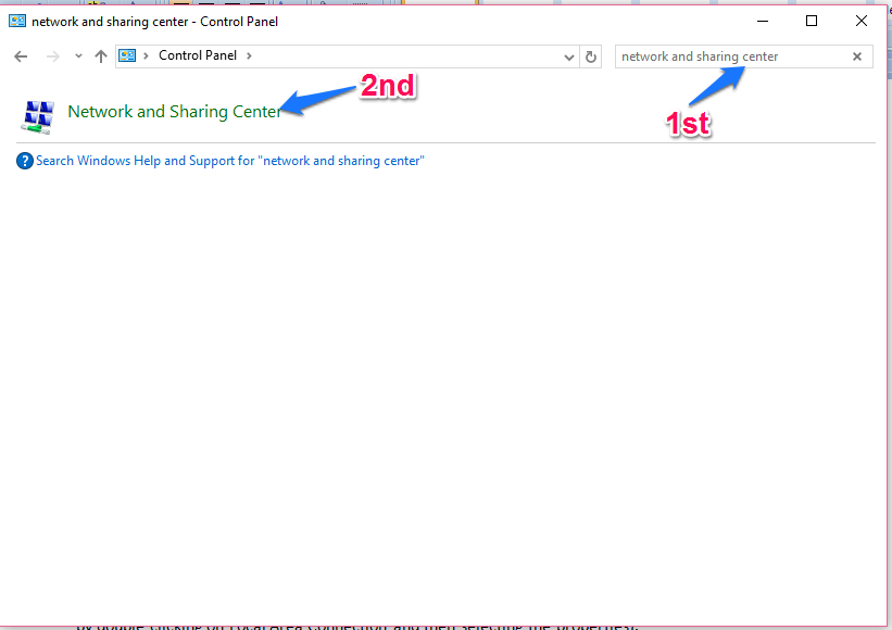 Шаг 7: Вернитесь в панель управления сейчас. В поле поиска вы должны ввести «Центр управления сетями и общим доступом». Выберите первый элемент, который выпадет.