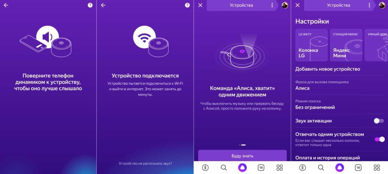 Самое главное — предварительно установить на телефон приложение Яндекс, авторизоваться в свой аккаунт и добавить умную колонку в перечень управляемых устройств. Без этого станцией полноценной пользоваться не получится.