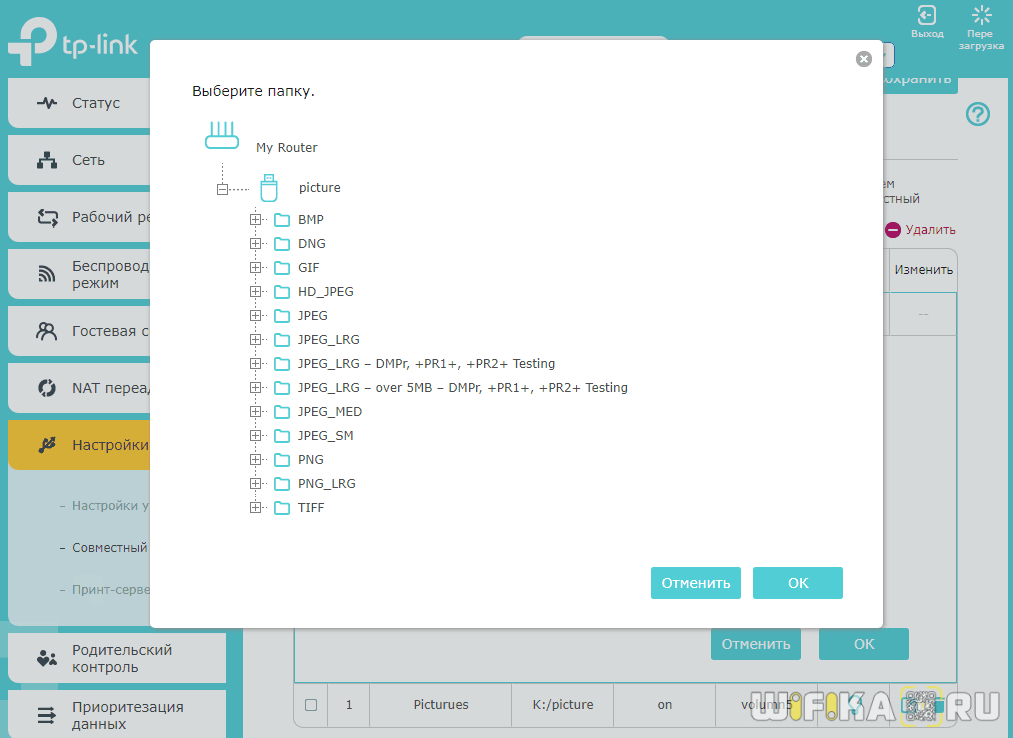 Также даем папке имя, которое будет отображаться в роутере и назначаем ей галочками разрешения на: