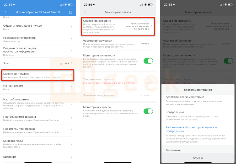 Задаем интервал мониторинга пульса в пункте «Мониторинг пульса» если вы хотите отслеживать частоту сердечных сокращений.